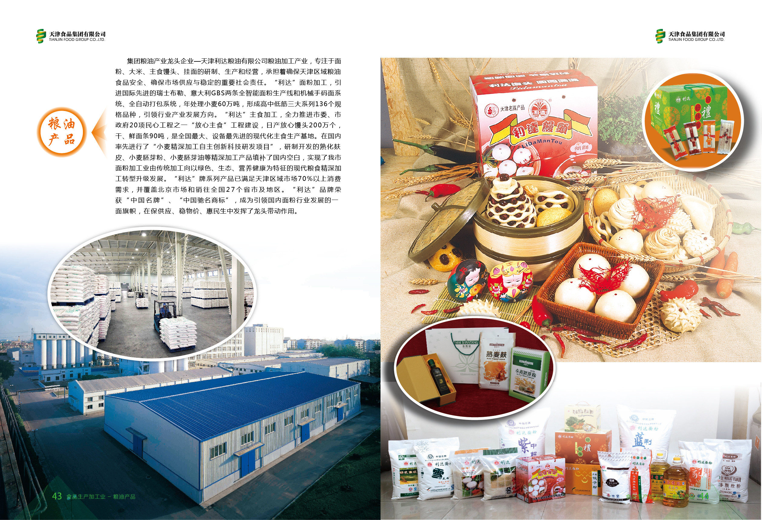 集團(tuán)糧油產(chǎn)業(yè)龍頭企業(yè)——天津市利達(dá)糧油有限公司專注于面粉、大米、主食饅頭和掛面的研制、生產(chǎn)和經(jīng)營,“利達(dá)”品牌在全國享有盛譽(yù),利達(dá)饅頭和利達(dá)蒸食花樣系列,品種多樣、麥香濃郁,年產(chǎn)量達(dá)4700萬個。在國內(nèi)率先進(jìn)行“小麥精深加工自主創(chuàng)新科技研發(fā)項(xiàng)目”,實(shí)現(xiàn)我市面粉加工業(yè)由傳統(tǒng)加工,向綠色、生態(tài)、營養(yǎng)健康為特征的現(xiàn)代精深加工轉(zhuǎn)型升級發(fā)展。