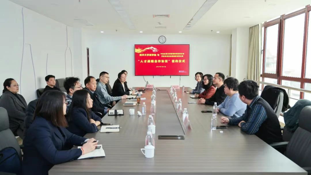 近日,南開大學(xué)商學(xué)院與集團(tuán)所屬王朝公司、供應(yīng)鏈公司人才戰(zhàn)略合作框架協(xié)議簽約暨就業(yè)實踐基地授牌儀式在王朝公司舉行。南開大學(xué)商學(xué)院黨委副書記樊振佳,黨委副書記、副院長周翠翠等一行到訪交流。集團(tuán)人力資源部及王朝公司、供應(yīng)鏈公司有關(guān)負(fù)責(zé)同志參加。